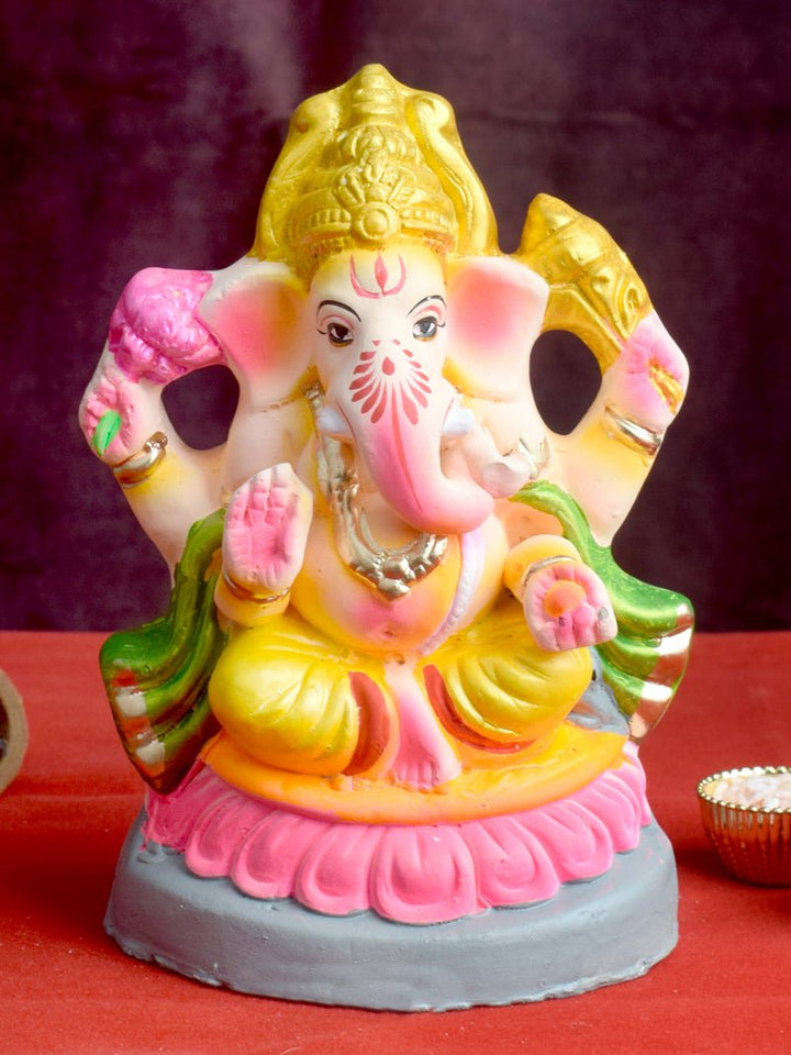 These True eco friendly Ganpati idols are also available in multi-colour options in red, white, yellow, green, white, pink, purple, blue, orange, gold, and other vibrant colours at the best price compared to the market online and come in beautiful packaging to gift to your relatives and friends. Eco Friendly Ganesha Idols are available in the Latest and Designer Collection of 2024 with Pagdi Ganesha, Mukut Ganpati, Ganeha Sitting in Chair Singashan, Bal Ganesha, Standing Ganesha, Lal Bagh ka Raja Ganpati Murti, Lalbaugcha Raja Ganesha Idol, and Many More.