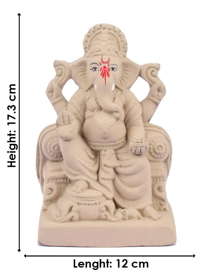 7 inch Ganesha idol | Ganpati on throne | Ganesha Shinghasan idol | Eco-friendly Ganesh murti | Decorative Ganpati statue | Clay Ganpati for home | Small Ganesh idol for pooja | Ganpati on decorative seat |