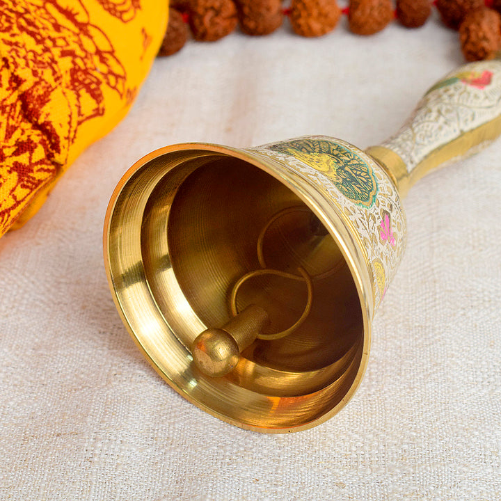 Handcrafted Puja Bell | Meenakari Brass Bell | White Puja Ghanti | Brass Pooja Bell 7 Inch | Designer Ghanti for Mandir | Meenakari Temple Bell | Indian Prayer Bell | Brass Ghanti for Aarti | Handcrafted Temple Bell | Decorative Puja Bell | White Brass Ghanti | Traditional Brass Bell | Meenakari Work Bell | Mandir Bell Brass | Satvik Puja Bell