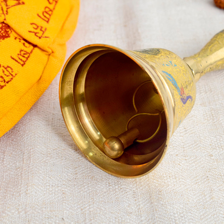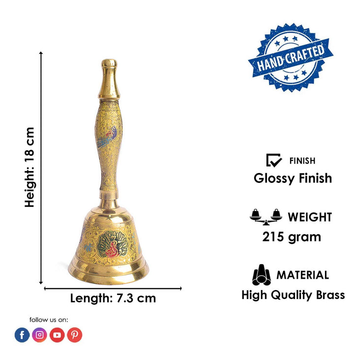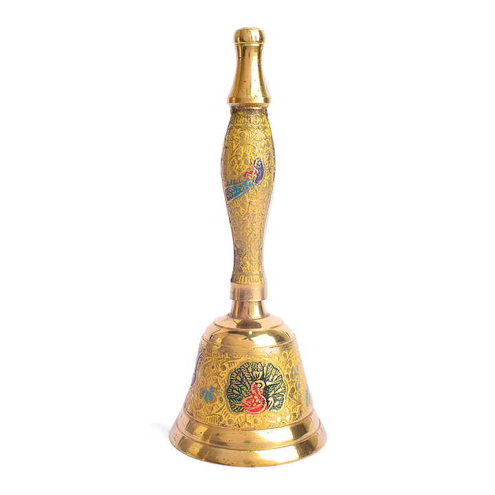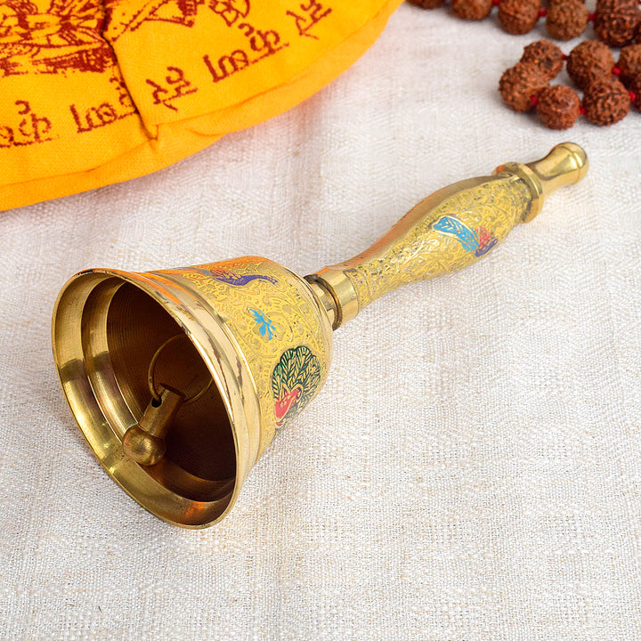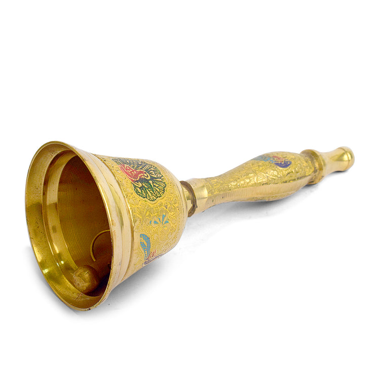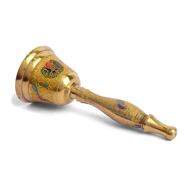 Handcrafted Puja Bell | Meenakari Brass Bell | Yellow Puja Ghanti | Brass Pooja Bell 7 Inch | Designer Ghanti for Mandir | Meenakari Temple Bell | Indian Prayer Bell | Brass Ghanti for Aarti | Handcrafted Temple Bell | Decorative Puja Bell | Yellow Brass Ghanti | Traditional Brass Bell | Meenakari Work Bell | Mandir Bell Brass | Satvik Puja Bell