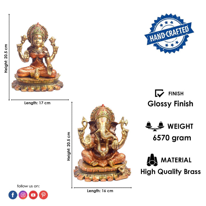 • Item Name: 8.1 Inch Elegant Brass Lakshmi Ganesh Idol