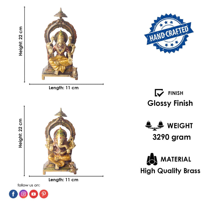 • Item Name: 8.7 Inch Timeless Brass Lakshmi Ganesha Idol