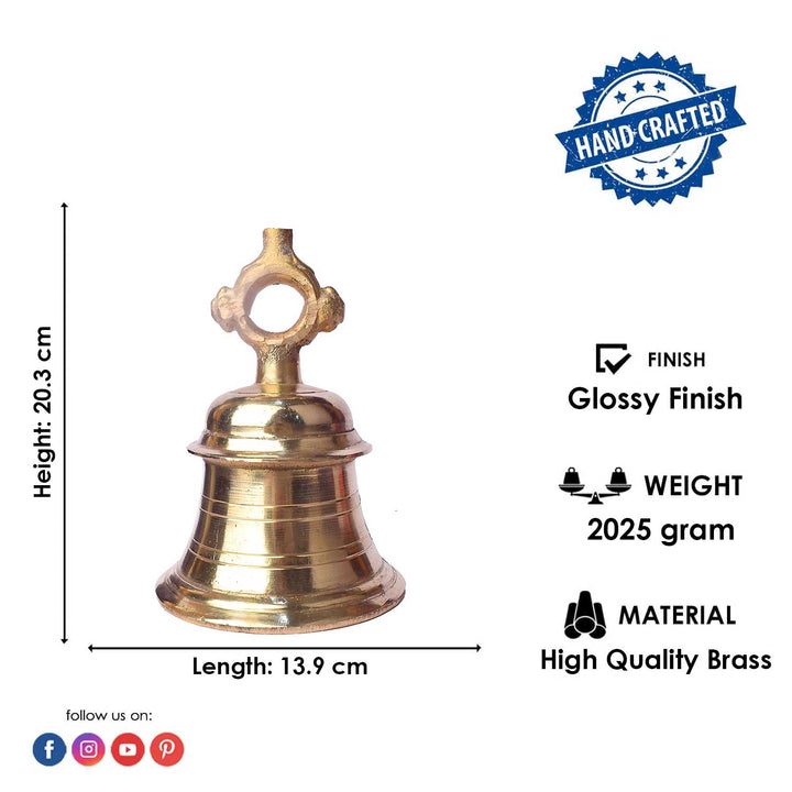8 inch brass pooja bell | Large mandir ghanta | Traditional brass temple bell | Brass ghanta for home temple | Heavy brass pooja bell | Temple size brass bell | Spiritual prayer bell | Premium pooja bell for rituals | Indian brass bell for mandir | Handmade brass ghanti | big brass bell | big bell |