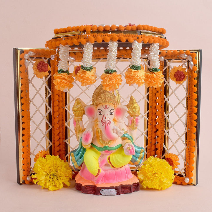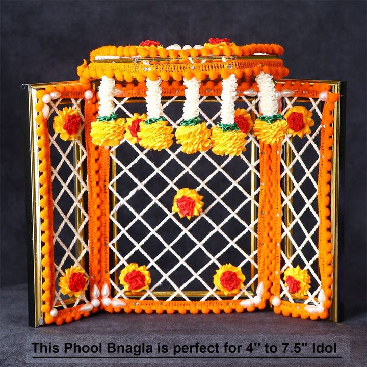 Ganesha Phool Bangla | Orange Ganpati Decoration | Ganesh Pandal Backdrop | Floral Ganesha Mandap | 8 Inch Ganpati Phool Bangla | Eco-Friendly Ganesh Decor | Phool Bangla for Ganpati Idol | Ganesh Utsav Decoration |