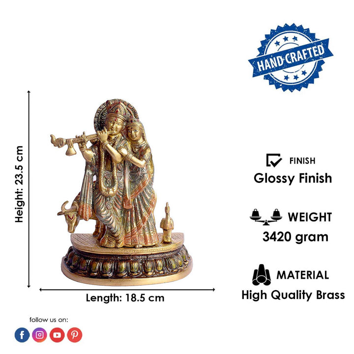 • Item Name: 9.3 Inch Radha and Krishna with Cow Brass Statue