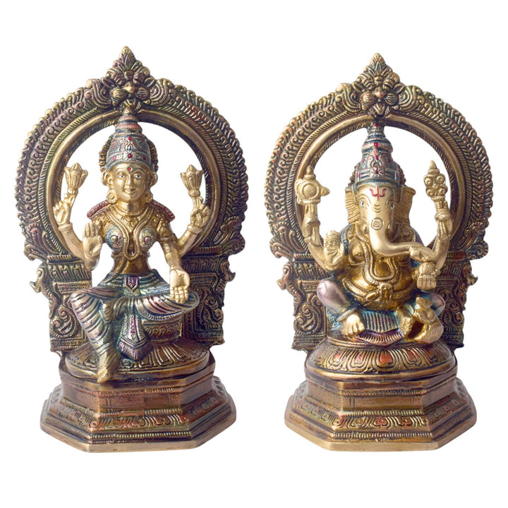 • Item Name: 9.4 Inch Elegant Handcrafted Brass Lakshmi Ganesha Idol