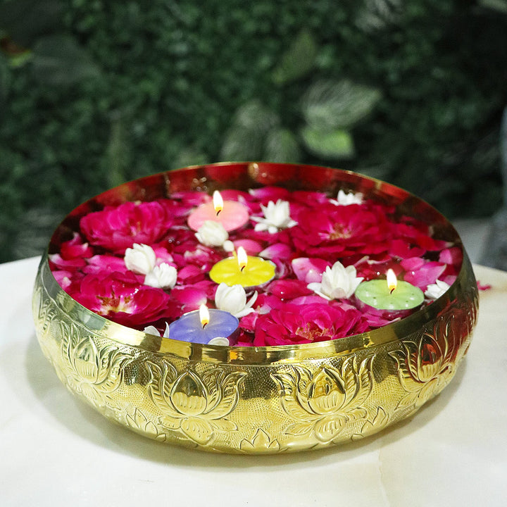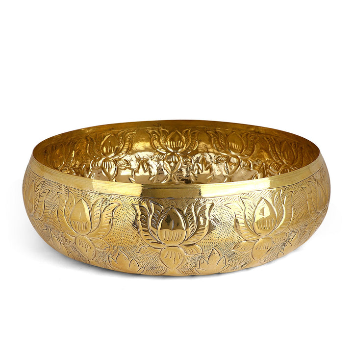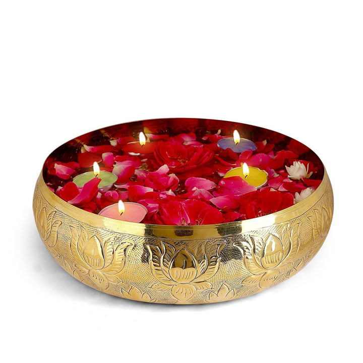 Decorative Brass Floral Pattern Embossed Urli for home decor at Best Price | Buy online – Satvikworld.com