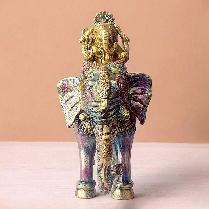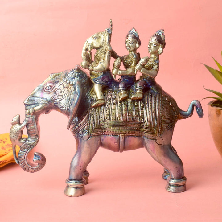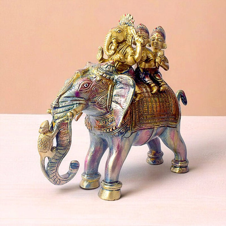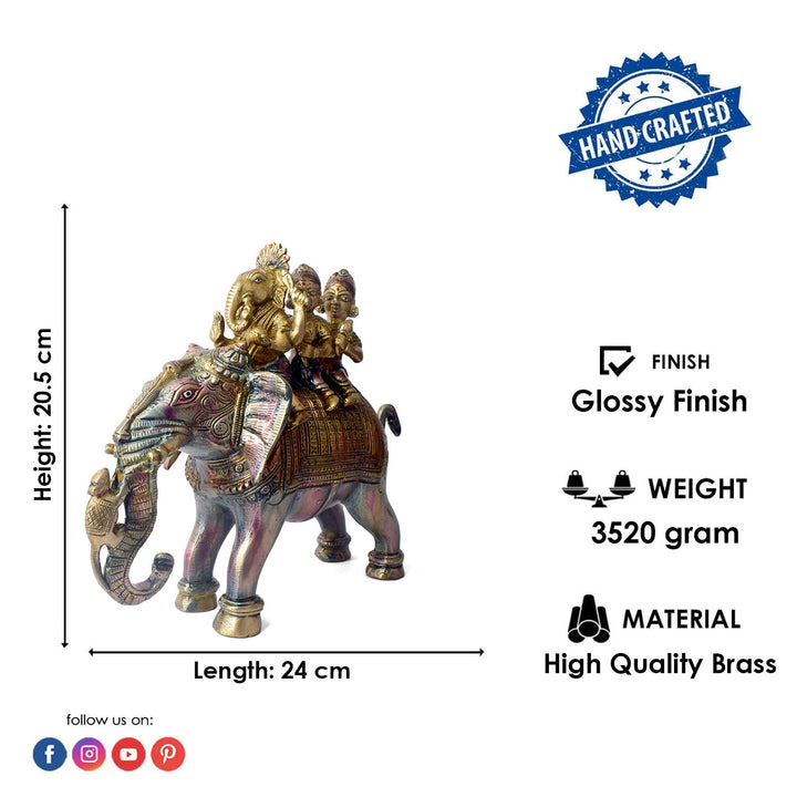 • Product Name: Brass Lord Ganesh Sitting On A Elephant Riding With Riddhi And Siddhi