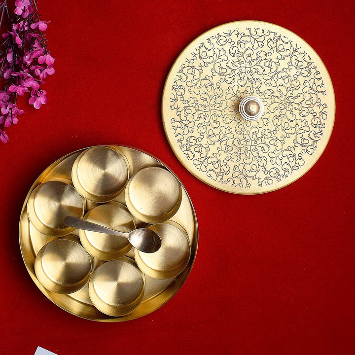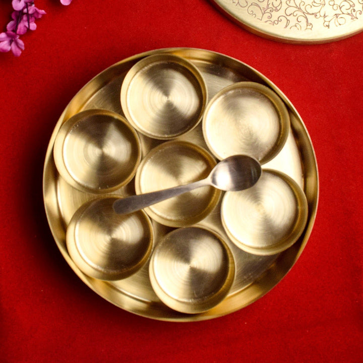 Brass Pooja Samagridaan (7 Containers) with Spoon Puja Organizer