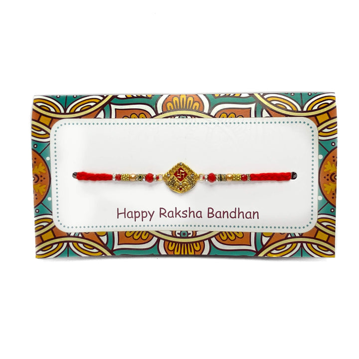 In this Box you will get Swastik Cotton Thread Rakhi , Roli Chawal, Greeting Card, Holy Soun (Ram Sita Stickers). Send your Love to your brother with this Rakhi Set. It will Make Rakshabandan Memorable.