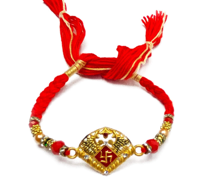 Satvik Swastik Red Cotton Thread Rakhi for Bahiya – Satvikworld.com