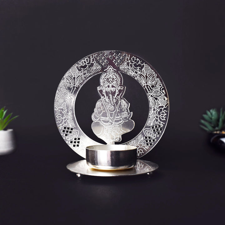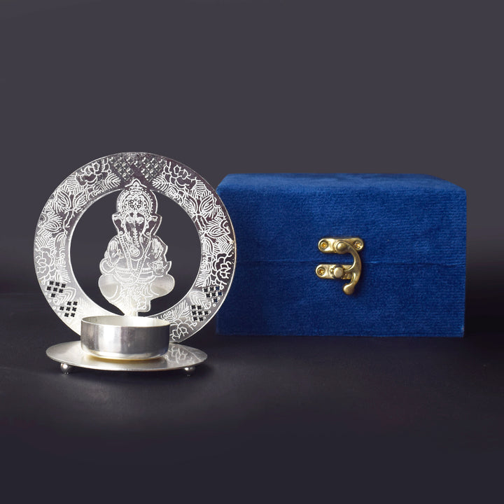 Buy Silver Ganesh Tea Light Candle Holder for Pooja | Satvikworld.com