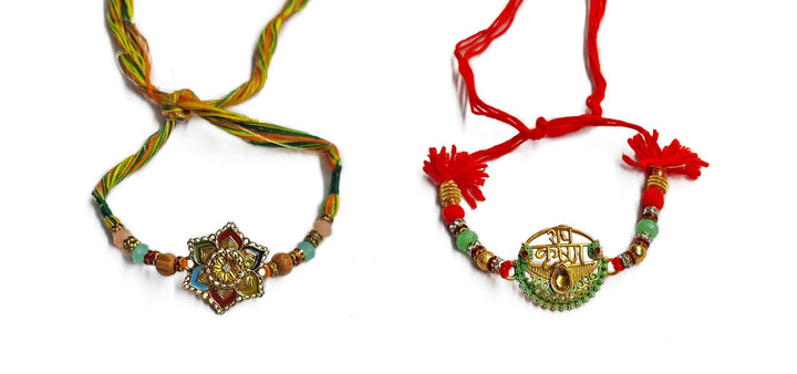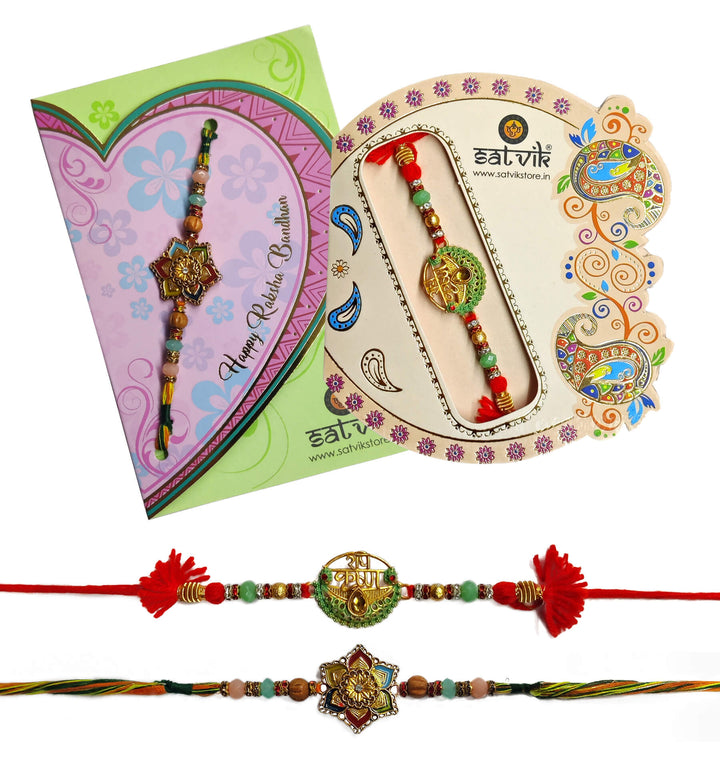 Satvik Set Of 2 flower And Radhey krishna Rakhi – Satvikworld.com