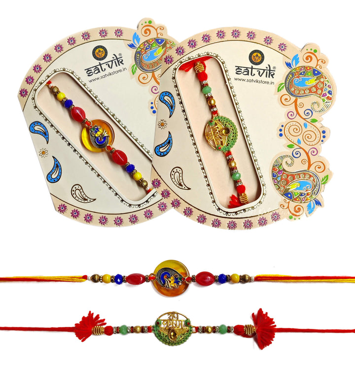 Satvik Set of 2 Handcrafted Radhey Krishna And Peacock Rakhi