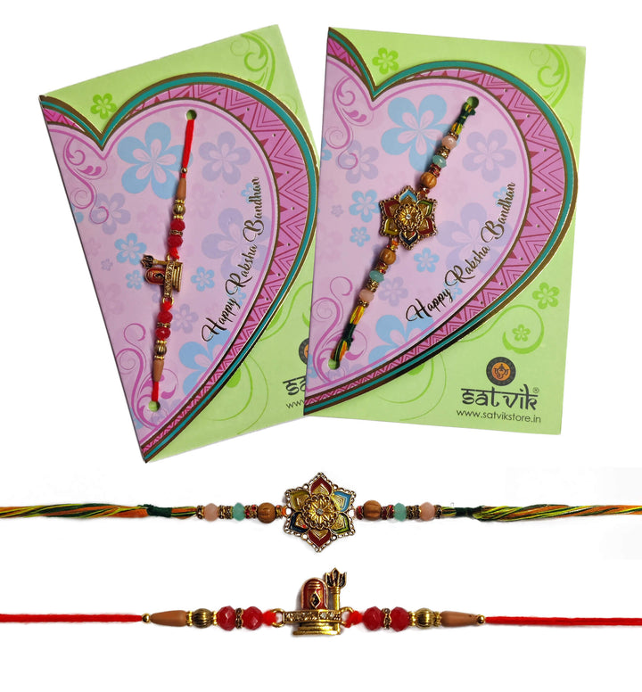 Satvik Set Of 2 Shivling and Multicolor Flower Rakhi – Satvikworld.com