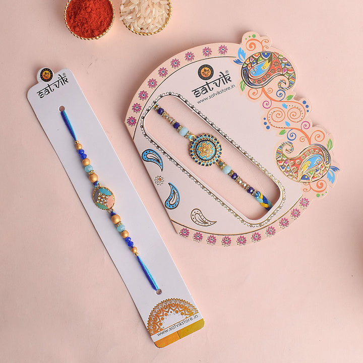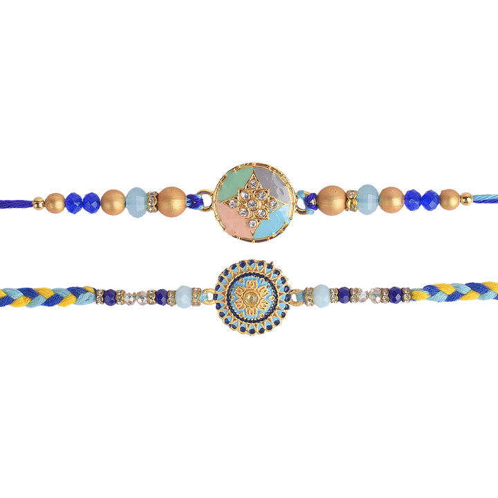 About Product: Strengthen the sacred bond of sibling love with this Set of Two Rakhis, beautifully designed for your beloved brothers. Each rakhi features traditional threadwork and intricate detailing, making them a perfect blend of spirituality and festivity.