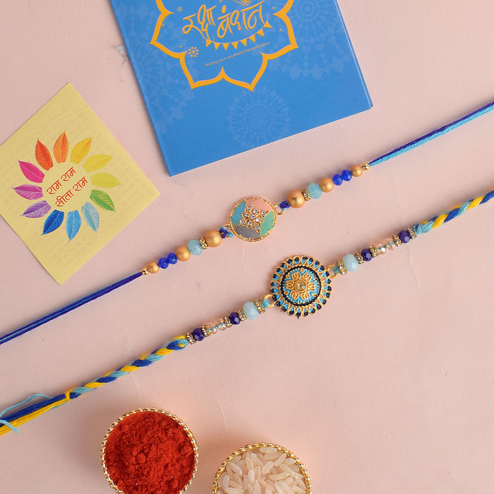 Set of 2 Rakhi | Rakhi for Brothers | Traditional Rakhi Combo | Rakhi Set with Roli Chawal | Buy Rakhi Online | Designer Rakhi for Brother | Rakhi with Stickers | Raksha Bandhan Rakhi Set | Premium Rakhi Threads | Rakhi for Siblings