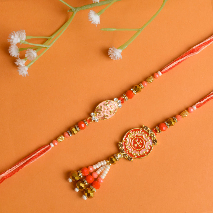 • About Product: Celebrate the eternal bond of love and tradition with this beautifully crafted Couple Rakhi Set designed for Bhaiya and Bhabhi. The men’s rakhi is bold and elegant, while the women’s lumba is graceful and festive—perfectly complementing each other as a symbol of togetherness.