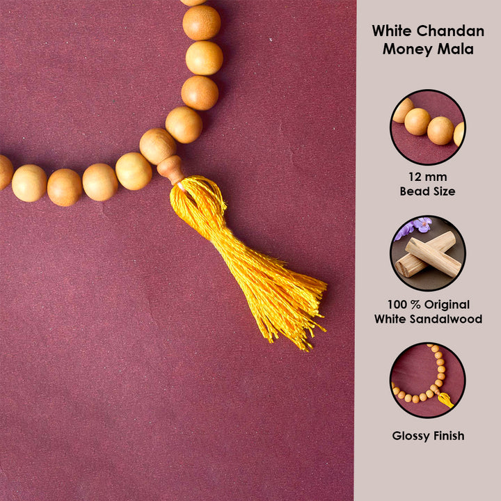 Buy 27 Bead White Chandan Mani Mala for Wealth | Satvikworld.com