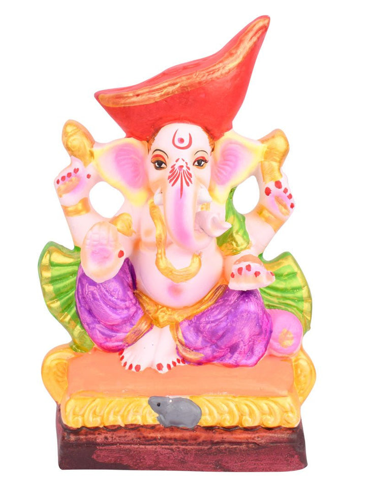 Eco Friendly Ganesha statues are made of 100% biodegradable and eco-friendly material by using Shadu Mati Clay Mitti, which dissolves easily in water. The colours used are also natural, and they decompose and dissolve in water easily. Although they have been made all across India, West Bengal and Maharashtra often employ skilled artisans to make them.