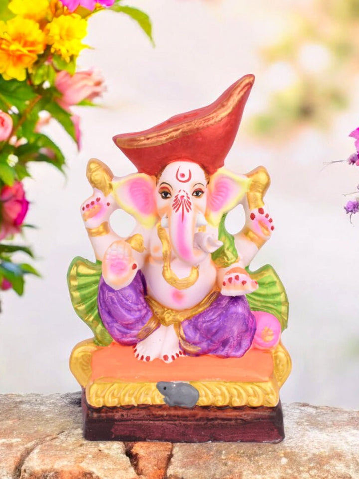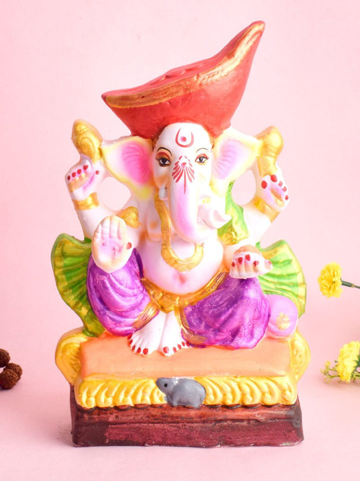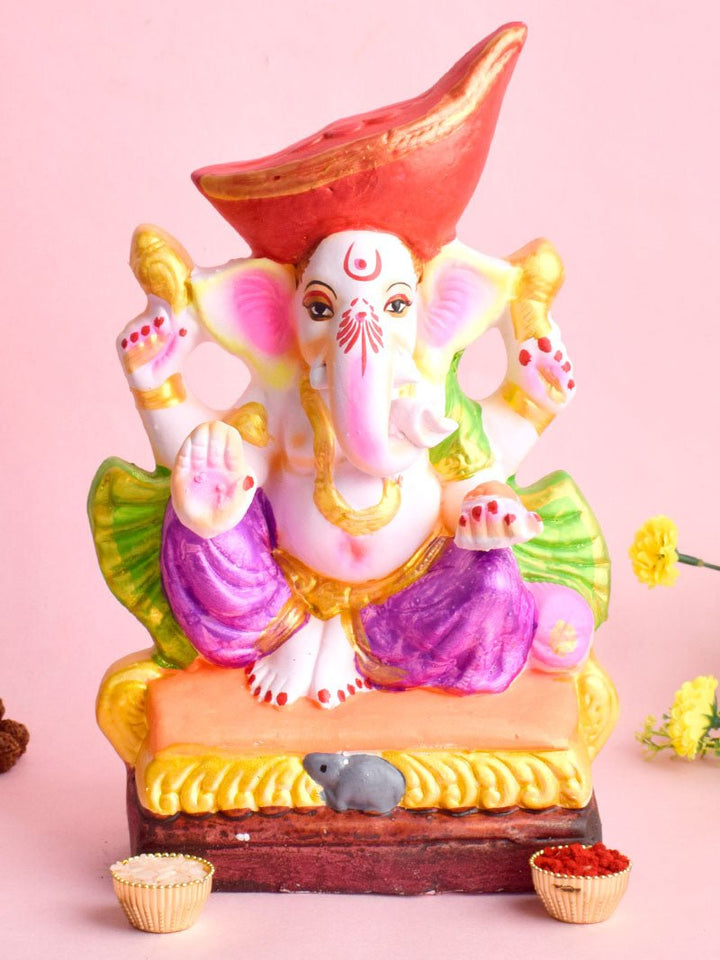 These True eco friendly Ganpati idols are also available in multi-colour options in red, white, yellow, green, white, pink, purple, blue, orange, gold, and other vibrant colours at the best price compared to the market online and come in beautiful packaging to gift to your relatives and friends. Eco Friendly Ganesha Idols are available in the Latest and Designer Collection of 2024 with Pagdi Ganesha, Mukut Ganpati, Ganeha Sitting in Chair Singashan, Bal Ganesha, Standing Ganesha, Lal Bagh ka Raja Ganpati Murti, Lalbaugcha Raja Ganesha Idol, and Many More.