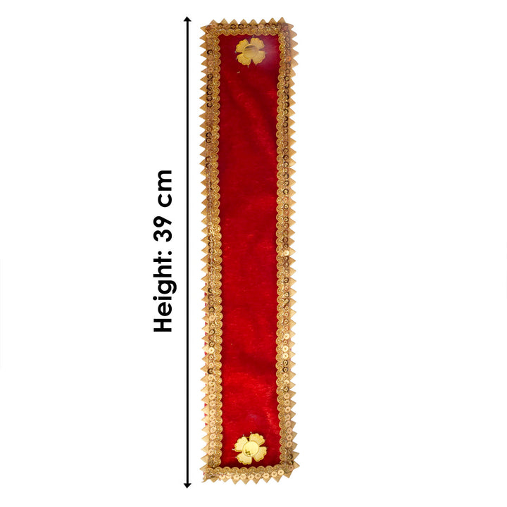 Joyful red Patka | Ganesh Angvastra | Ganpati decoration red cloth | Traditional red Ganesh dupatta | Red festive fabric for Ganpati idol | Vibrant red Patka for Ganesh | Ganesh idol decorative fabric in red |
