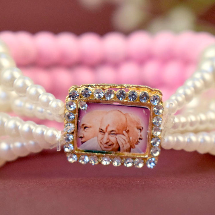 pink white guruji bracelet | pink pearl guruji bracelet | four layer spiritual bracelet | elegant guruji swaroop bracelet | divine pink beads bracelet | white pearl devotional bracelet | jai guruji bracelet | spiritual jewellery india | feminine spiritual bracelet | pooja return gift for women | stylish spiritual bracelet | meditation accessories | guruji bracelet india | graceful spiritual jewellery | indian religious bracelet | satvikworld spiritual products | guruji bracelet online india | pooja items