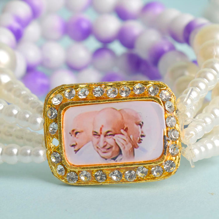 Buy Online | White & Lilac White Pearl Guruji Swaroop Bracelet | satvikworld.com – Satvikworld.com