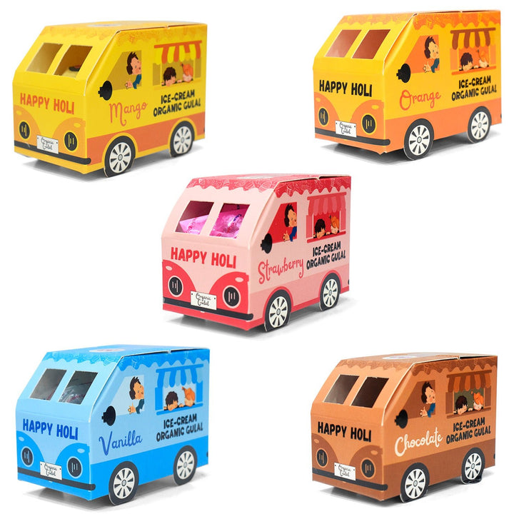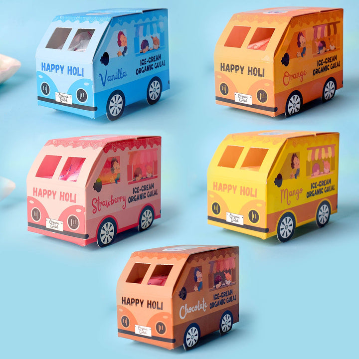 ICE-CREAME Organic Gulal Holi Colors Set of 10 with with Distinctive Car Box Packaging