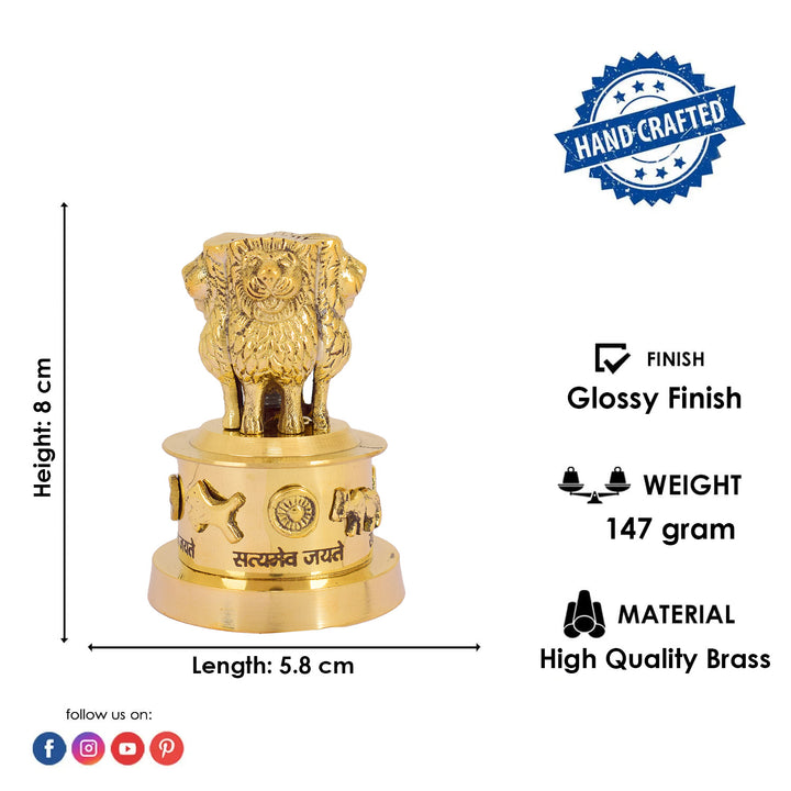 • Item Name: 3 Inch Brass Ashoka Pillar – Miniature Indian Art Sculpture for Display