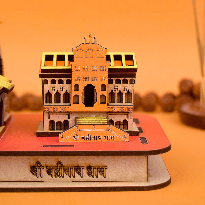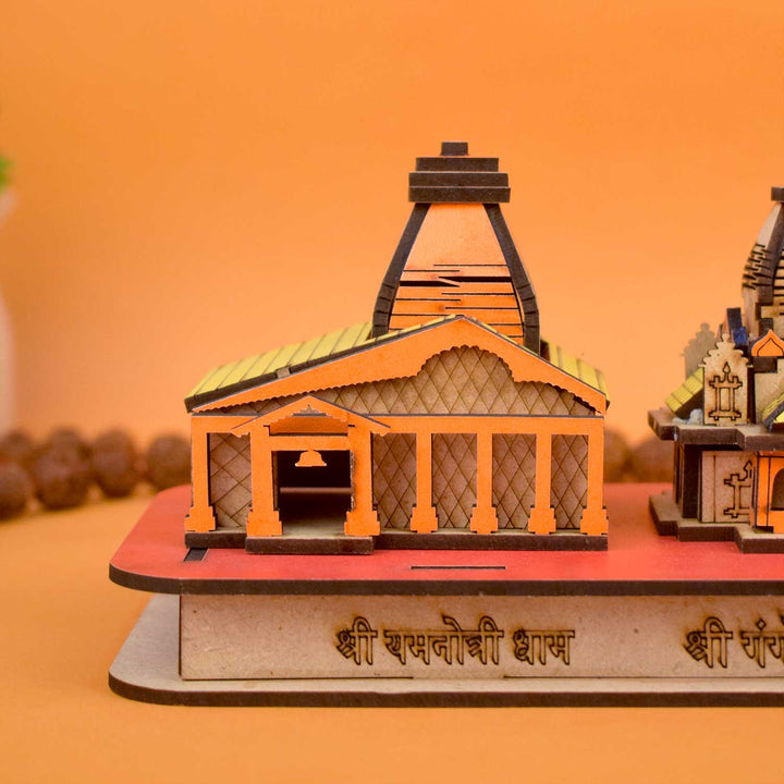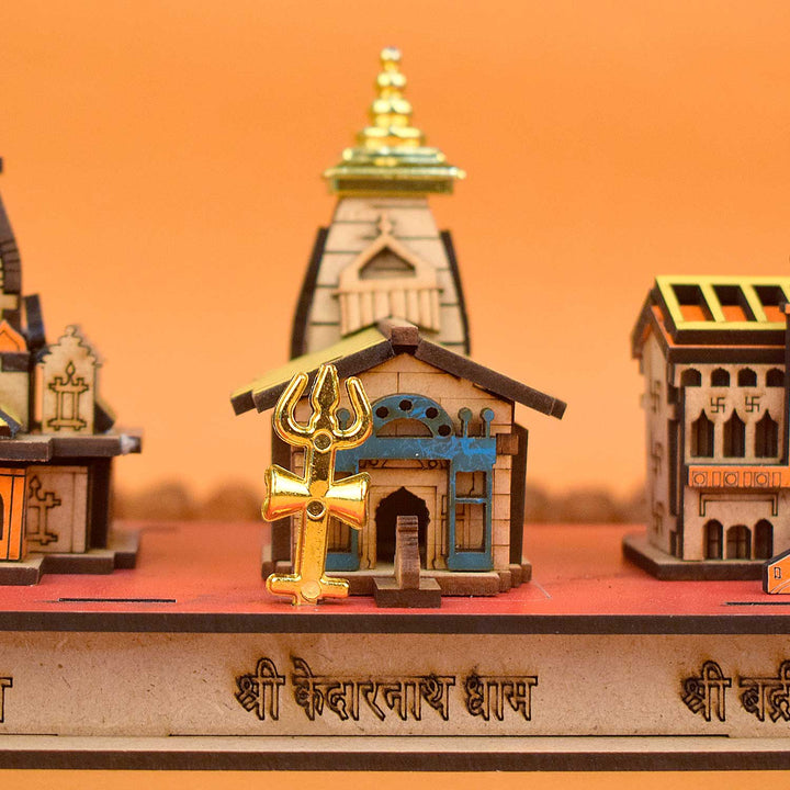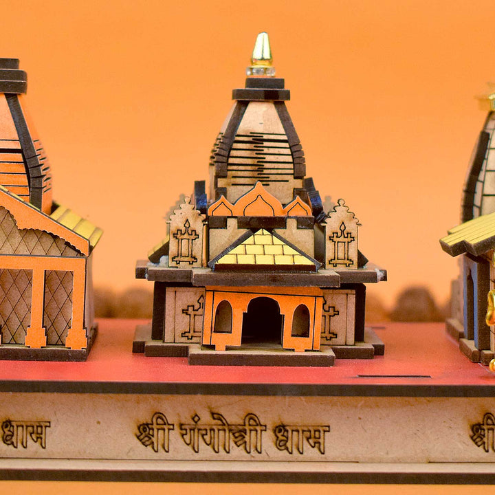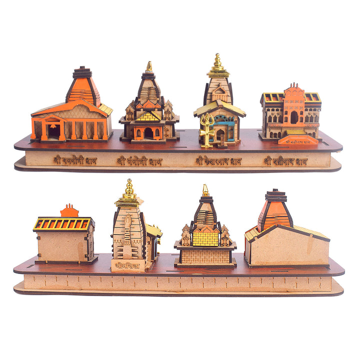 char dham 3d showpiece | wooden char dham decor | plywood temple model | 3d spiritual artwork | hindu pilgrimage showpiece | pooja room decoration | satvikworld.com