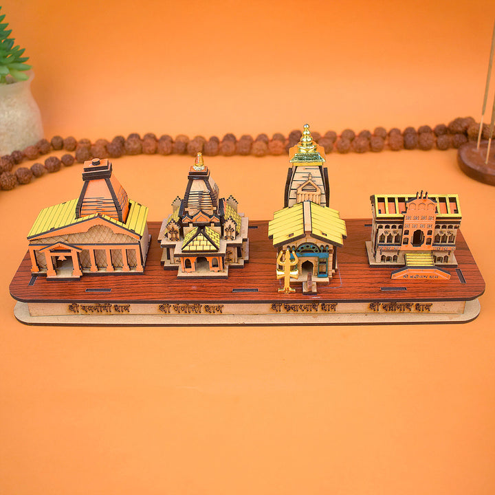 Char Dham Yatra 3D Wooden Showpiece – Sacred Plywood Temple Decor