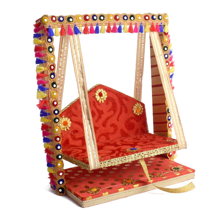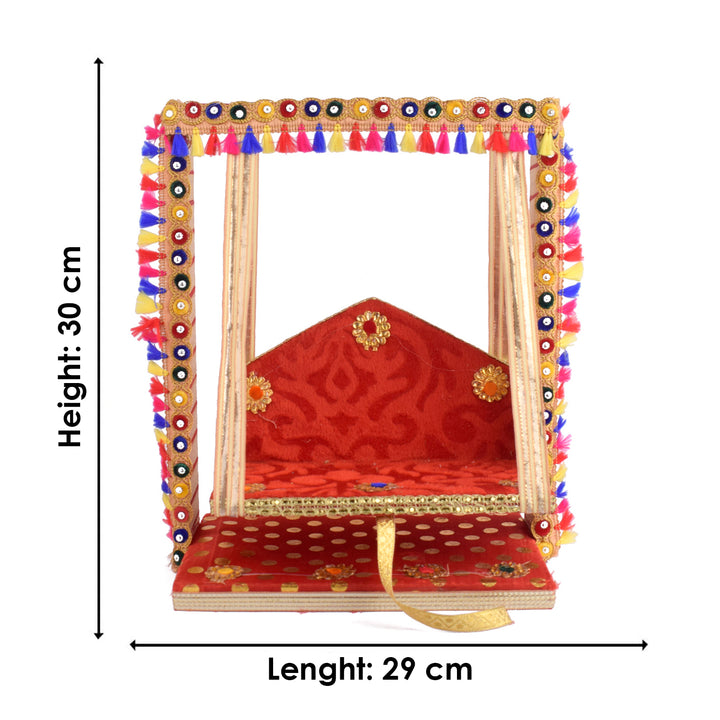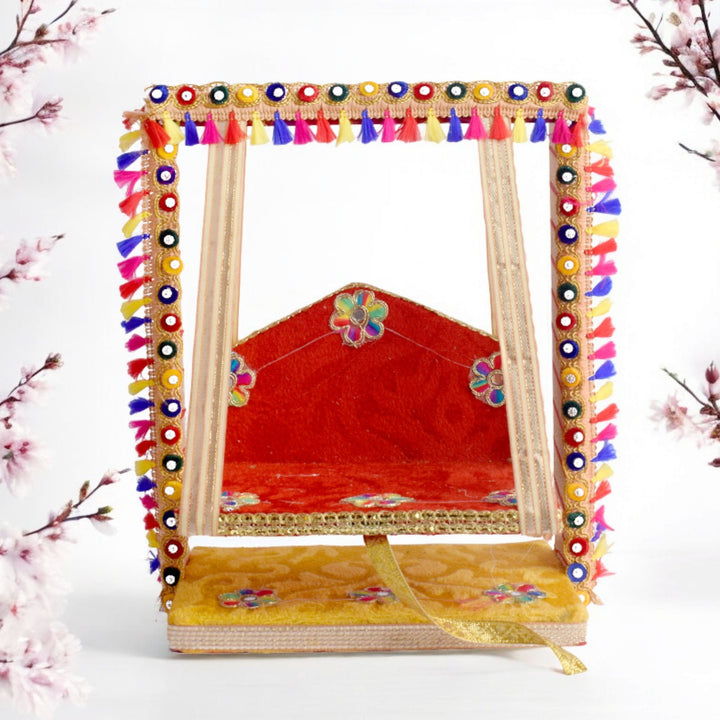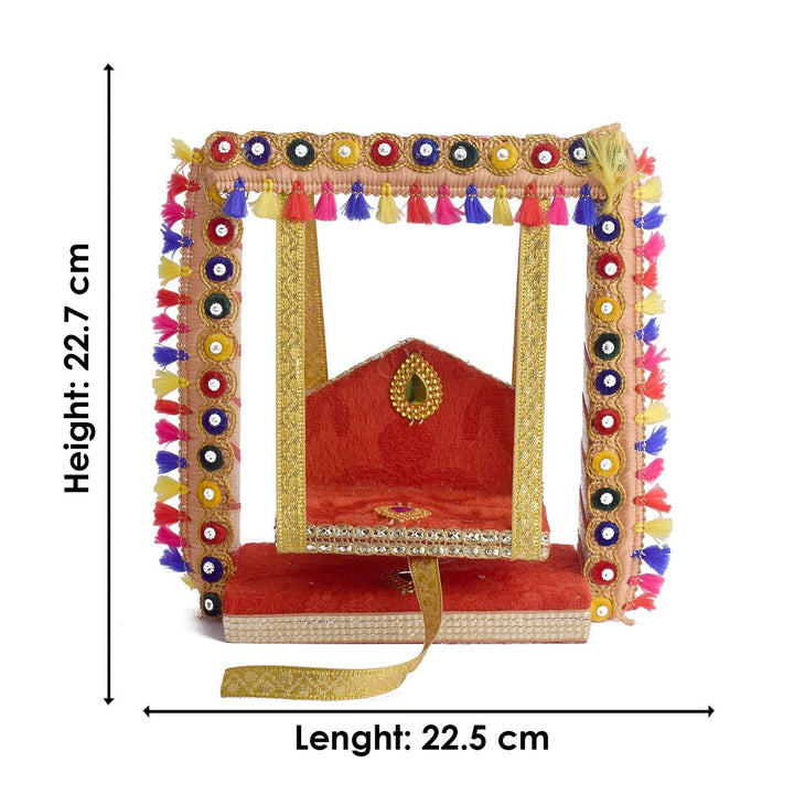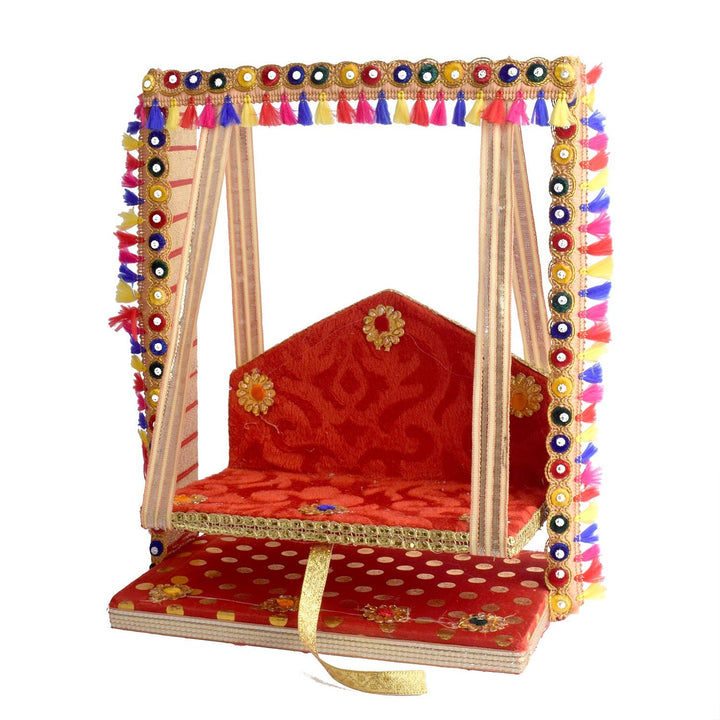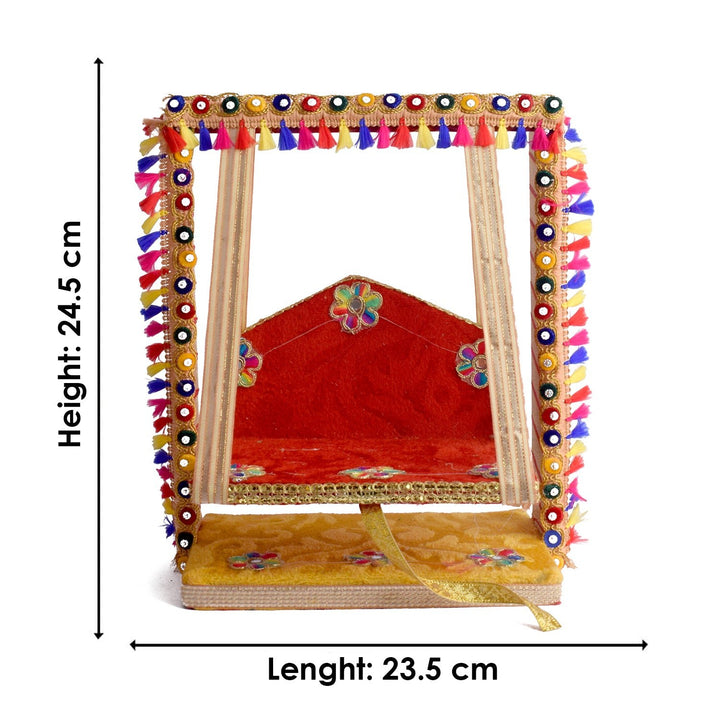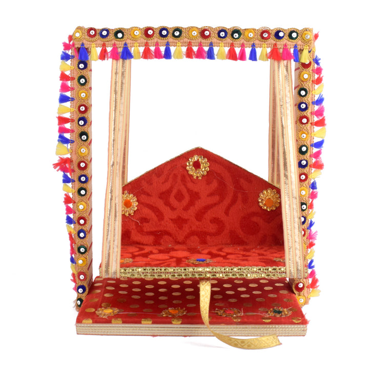 • Description:- On sign ificant festivals, Laddu Gopal Ji Jhula are typically used as a decoration and a backdrop for Laddu Gopal and Ganpati. These Laddu Gopal Ji Jhula are made by the most talented artisans in West Bengal and Uttar Pradesh. On the occasions of Janamashtmi, these are widely used at pandals and mandirs as well as homes and businesses.