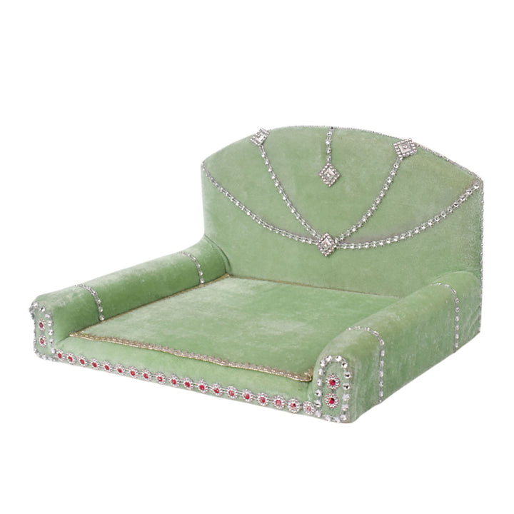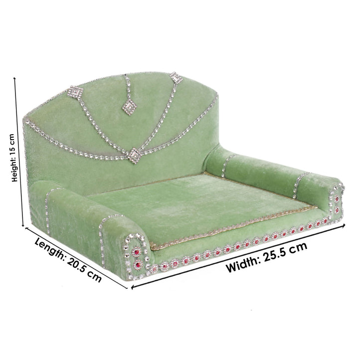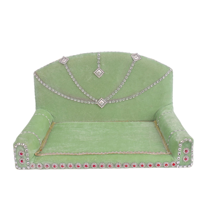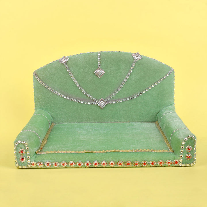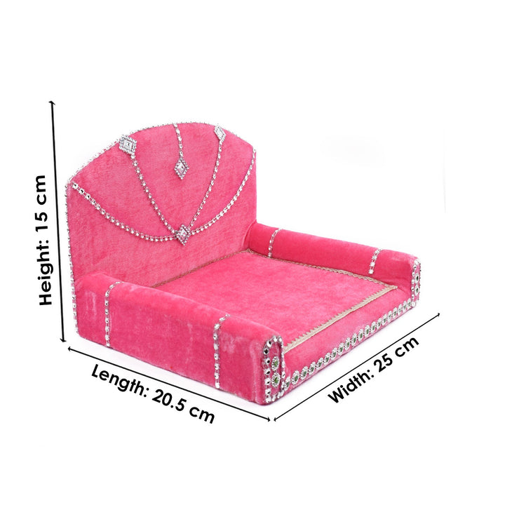 As you place your Laddu Gopal on this sacred throne, watch as the velvet embraces the little lord, showering blessings and grace upon your home. Its charming allure and captivating design make it a true centerpiece of devotion, adding a touch of splendor to your worship space.