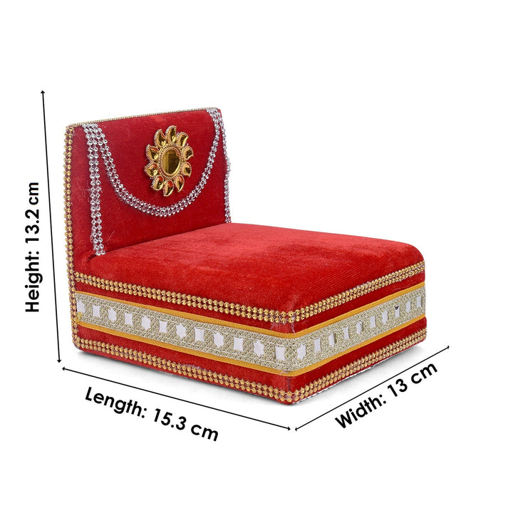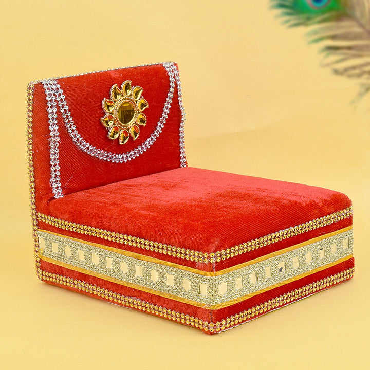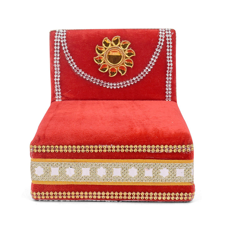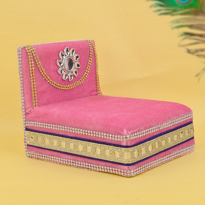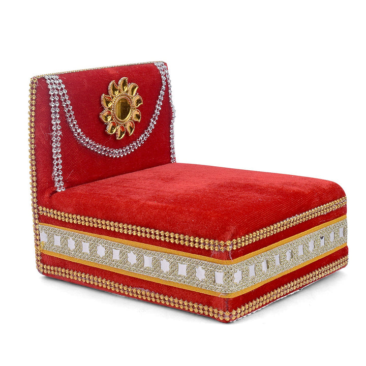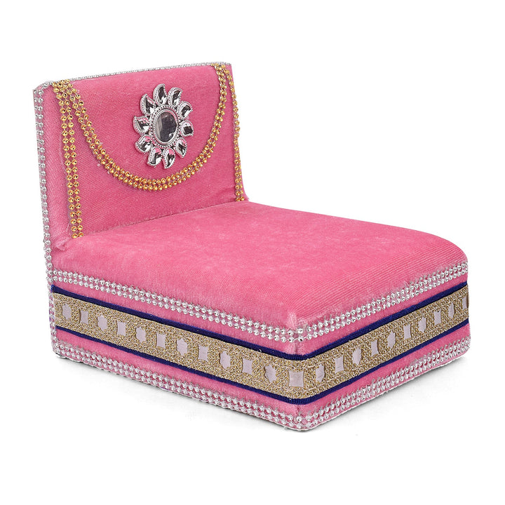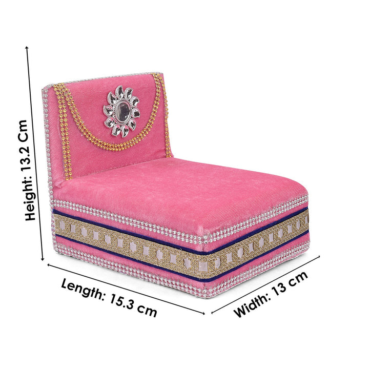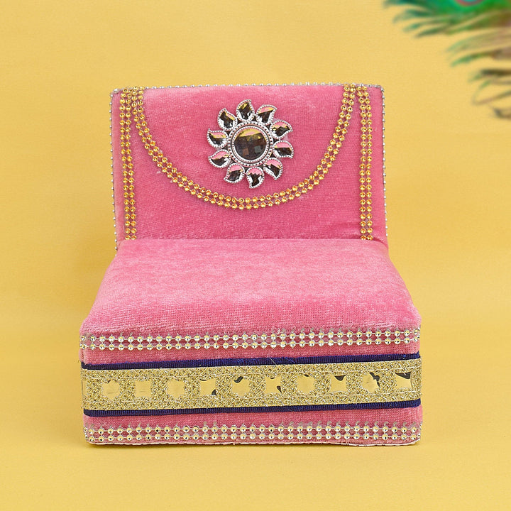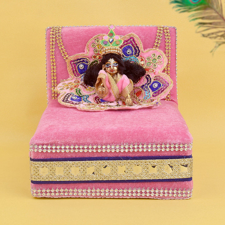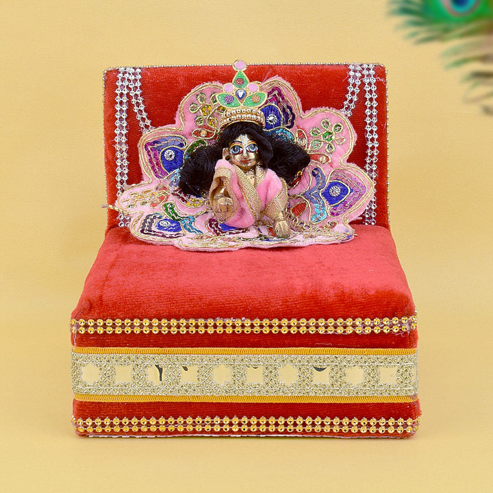 As you place your Laddu Gopal on this sacred throne, watch as the velvet embraces the little lord, showering blessings and grace upon your home. Its charming allure and captivating design make it a true centerpiece of devotion, adding a touch of splendor to your worship space.