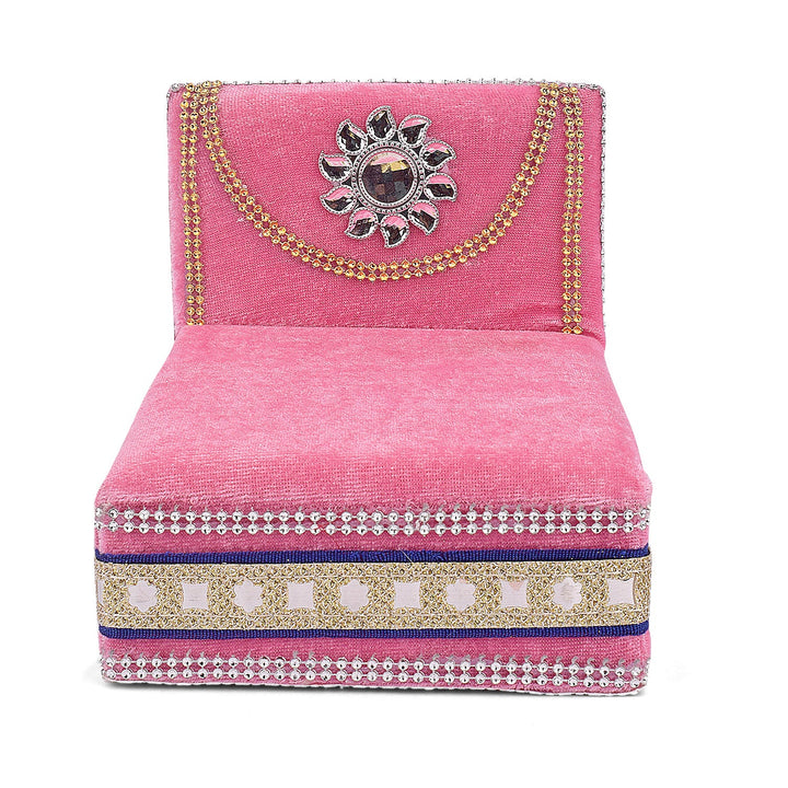laddu gopal velvet sleeping bed | velvet deity bed small | kanha ji pink velvet bed | red gopal ji sleeping throne | pooja bed for krishna ji | small size divine bed | bal gopal accessories | temple pooja bed | laddu gopal sleeping seat | home mandir bed for kanha