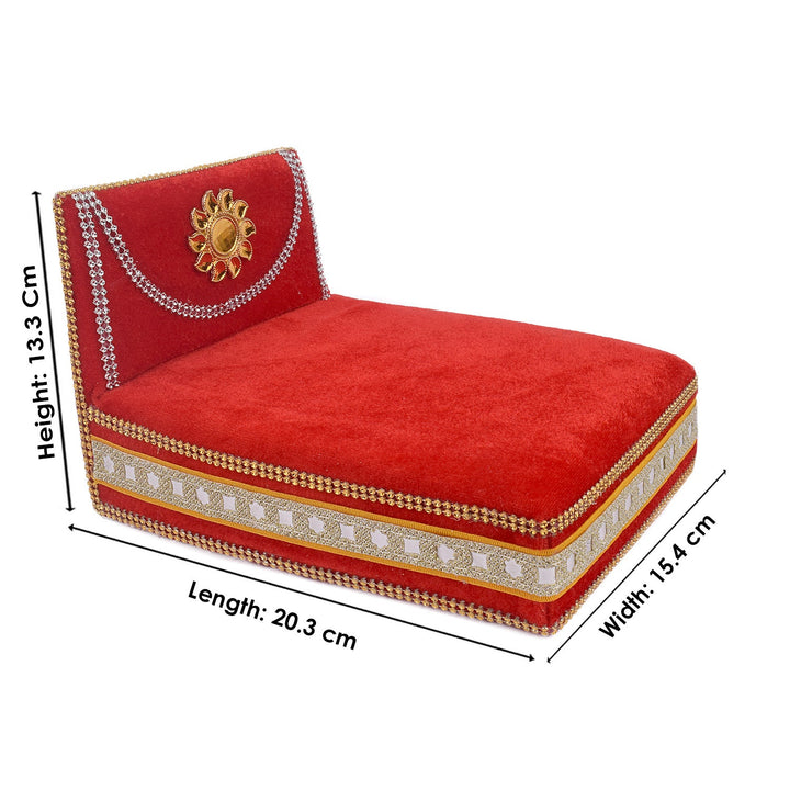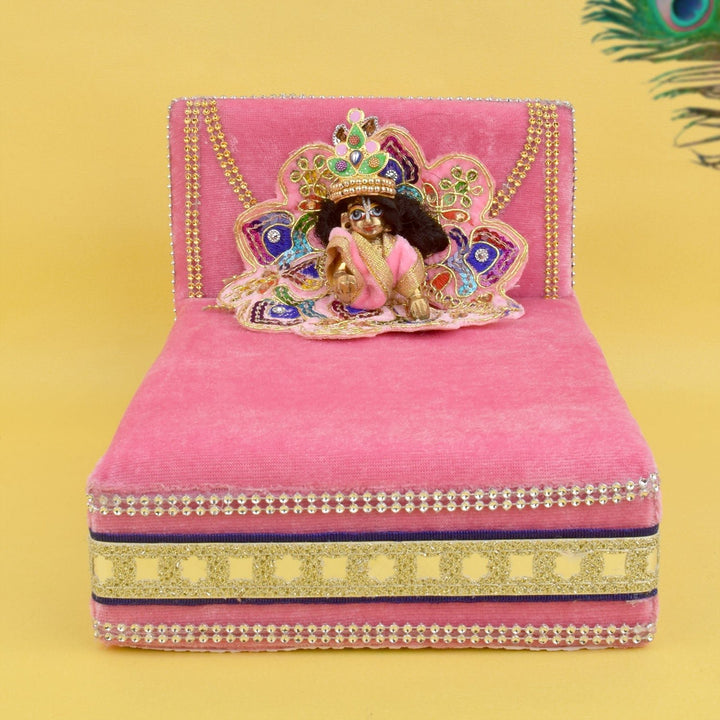 As you place your Laddu Gopal on this sacred throne, watch as the velvet embraces the little lord, showering blessings and grace upon your home. Its charming allure and captivating design make it a true centerpiece of devotion, adding a touch of splendor to your worship space.