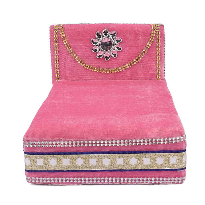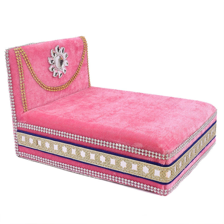 laddu gopal velvet sleeping bed | sacred gopal ji bed large | pink velvet krishna bedding | red bal gopal pooja bed | resting seat for laddu gopal | kanha ji luxurious sleep bed | large pooja bed for deity | velvet divine bed | pooja room laddu gopal accessories