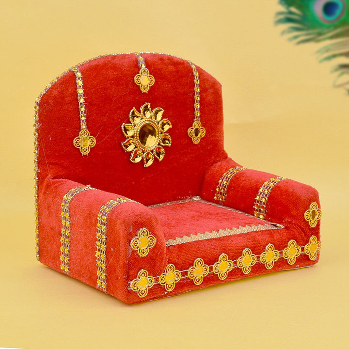 About Product: Step into the realm of divinity with our exquisite Laddu Gopal Velvet Singhasan, a regal abode for your beloved deity. Crafted with utmost care and adorned with intricate details, this singhasan exudes an aura of celestial elegance. The soft velvet caresses the divine idol, providing a luxurious and comfortable seat.