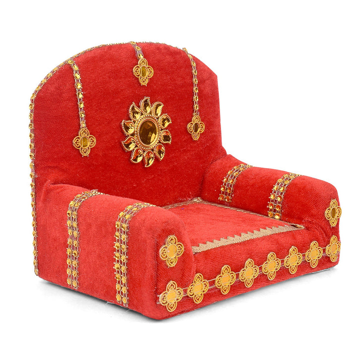 As you place your Laddu Gopal on this sacred throne, watch as the velvet embraces the little lord, showering blessings and grace upon your home. Its charming allure and captivating design make it a true centerpiece of devotion, adding a touch of splendor to your worship space.