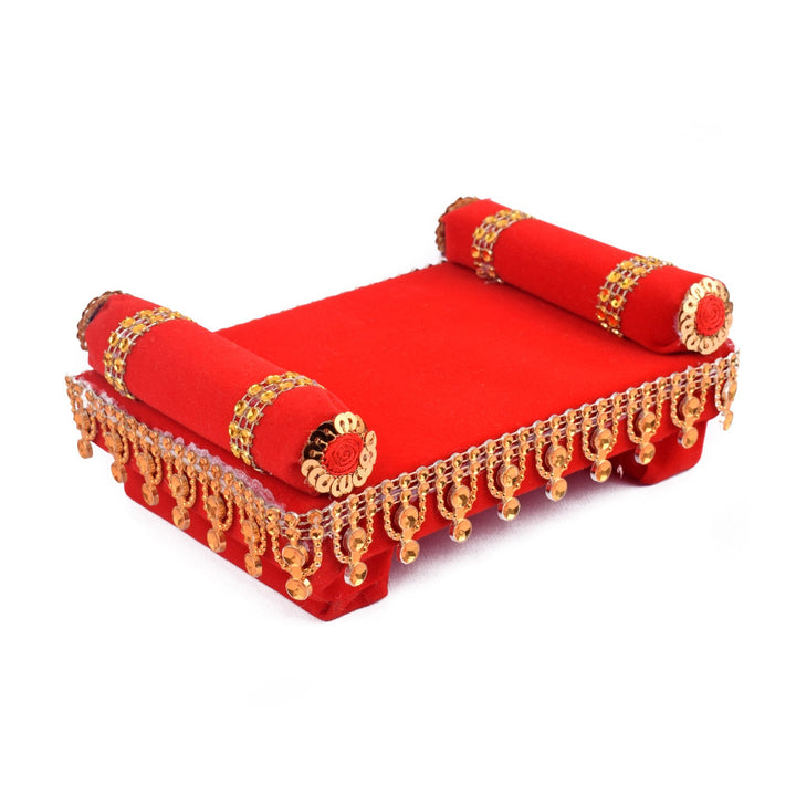 velvet laddu gopal singhasan | royal deity throne | krishna singhasan velvet | bal gopal seat for mandir | traditional gopal singhasan | red velvet throne for laddu gopal | pooja accessories for kanha ji | raj singhasan for krishna | satvikstore divine decor