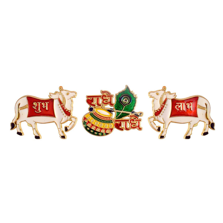 Shubh Labh Leaf With Swastik Wooden StickerPackage Contains: 1 Pair of Cow Stickers and 1 Handhi Sticker