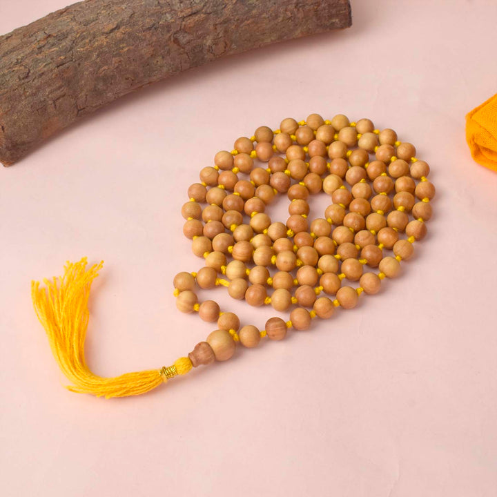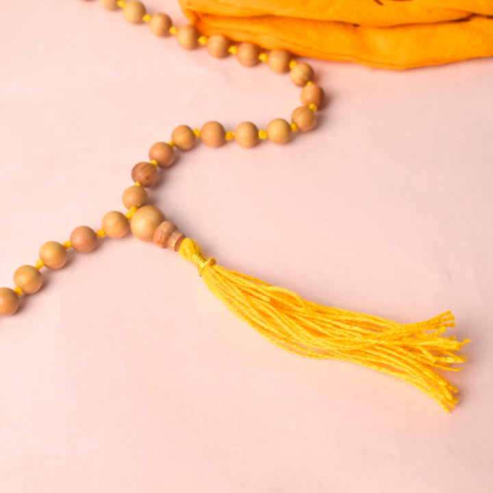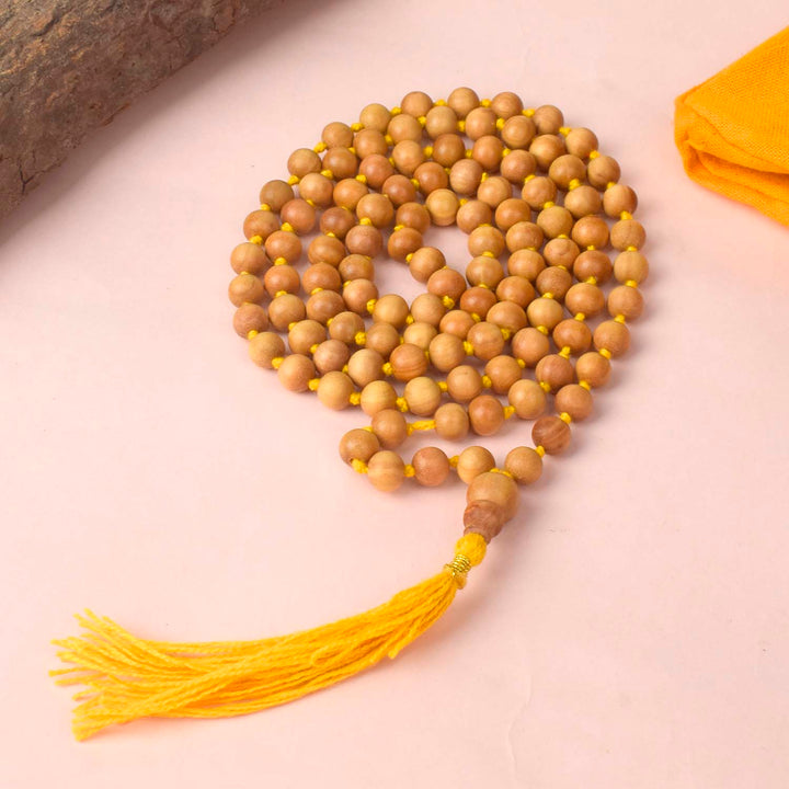 Certified 8-9mm 100% Original Authentic Mysore White Sandalwood (Chandan) yellow thread Jap Mala