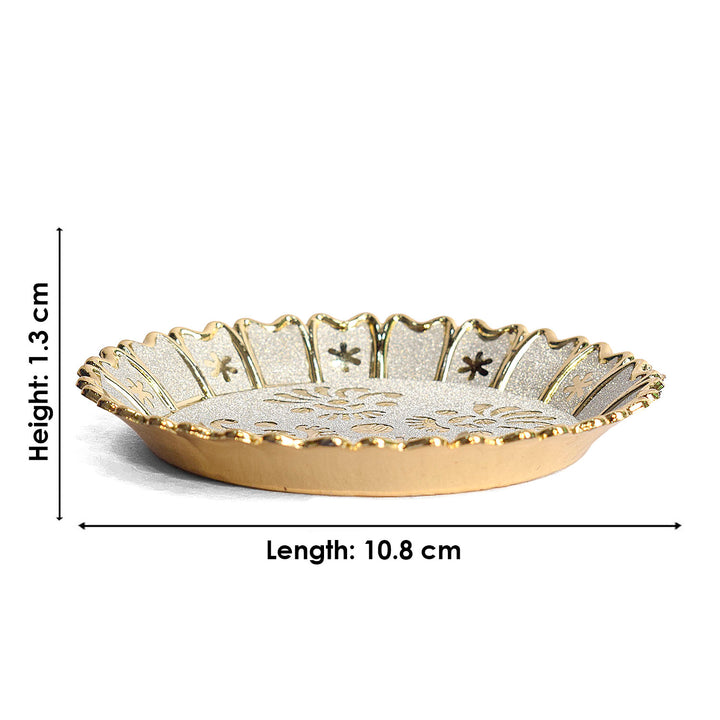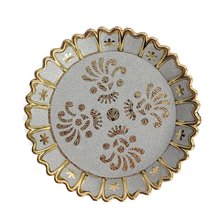 • About Product: If you're searching for Indian decor to add something unique to your home, the beautiful Hindu Puja Thali beautiful flower design can easily be used as a display piece, even if you are not of the Hindu faith. For a bit of background, this piece is known as a thali, a traditional Indian serving tray. It may be filled with offerings and placed at a temple in a home as a part of puja or prayers. You can display the thali platter on a plate stand on a shelf or table and share some of the beauty and spirituality of Hindu religious practices with your friends and family.