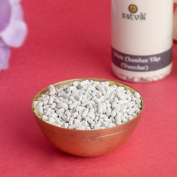 • Package Content:  35 Gram of White chandan tilak danedar or Safed chandan tika.
