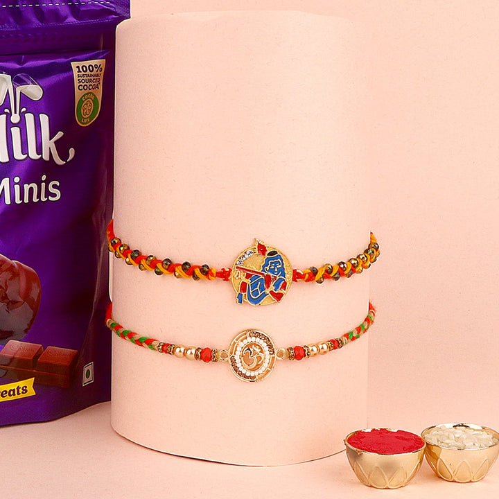 • Package: Set of 2 Bhaiya Rakhi, 1 Greeting card, 1 Roli Chawal Bottle, 1 Chocolate Pack