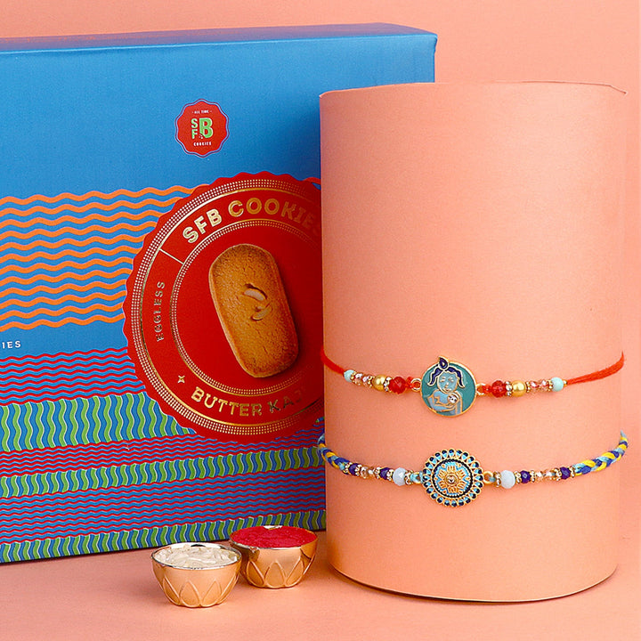 • About Product: Celebrate the joyous occasion of Rakhi with our delightful Rakhi with Cookies gift set. This perfect combination features a beautifully crafted Rakhi symbolizing the bond between siblings, paired with a selection of scrumptious cookies that will leave your taste buds craving for more. Indulge in the mouthwatering flavors and textures of these delectable treats, perfectly complementing the heartfelt sentiments shared between brothers and sisters. Whether you're near or far, our Rakhi with Cookies gift set is a sweet and thoughtful way to express your love and strengthen the cherished bond you share. Make this Raksha Bandhan truly memorable with this irresistible combination.
