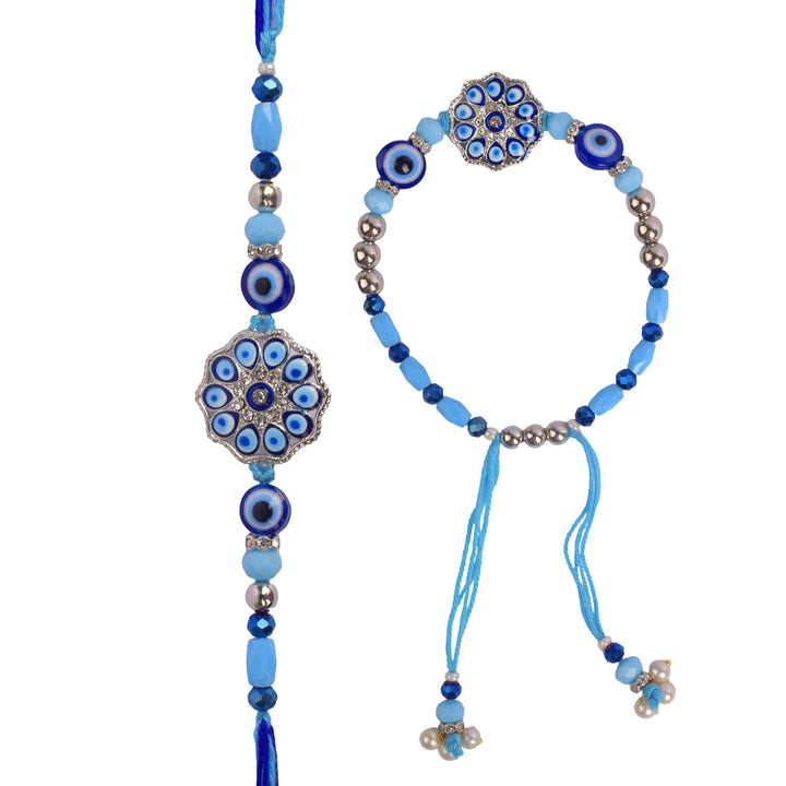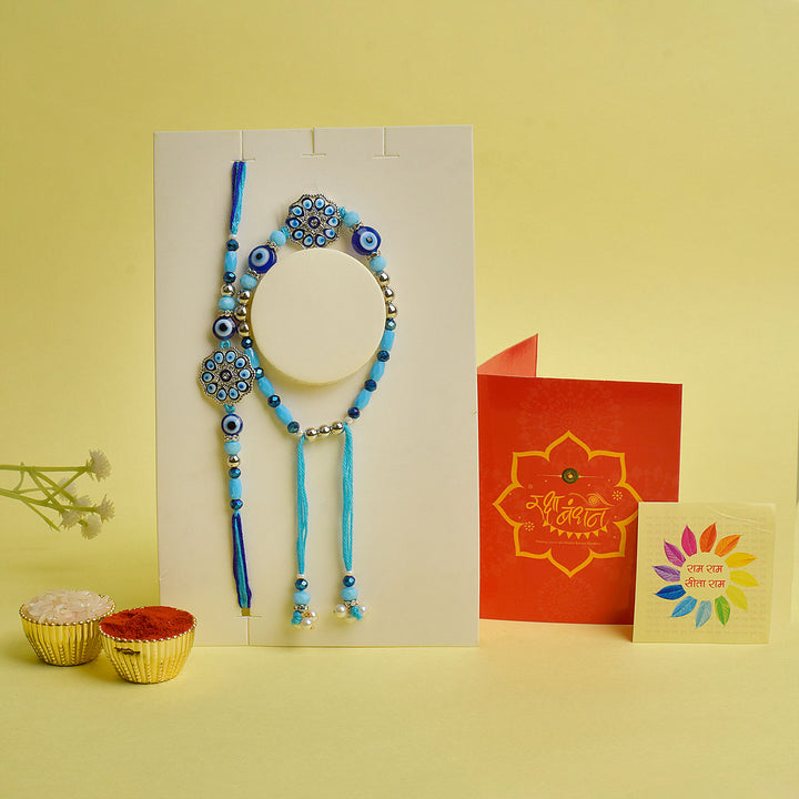 • Package: 1 Men Rakhi, 1 Women Lumba Rakhi, Roli Chawal Pack, Ram & Sita Theme Stickers