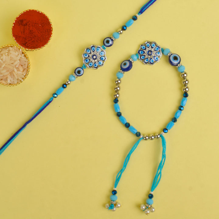 • About Product: Celebrate the eternal bond of love and tradition with this beautifully crafted Couple Rakhi Set designed for Bhaiya and Bhabhi. The men’s rakhi is bold and elegant, while the women’s lumba is graceful and festive—perfectly complementing each other as a symbol of togetherness.