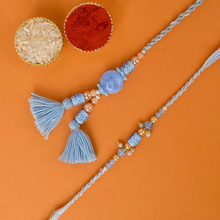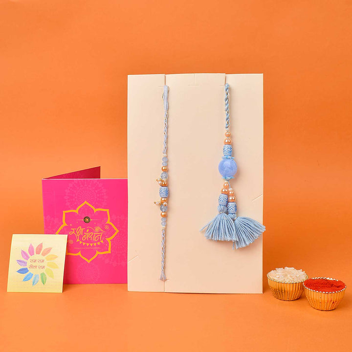 • Package: 1 Men Rakhi, 1 Women Lumba Rakhi, Roli Chawal Pack, Ram & Sita Theme Stickers